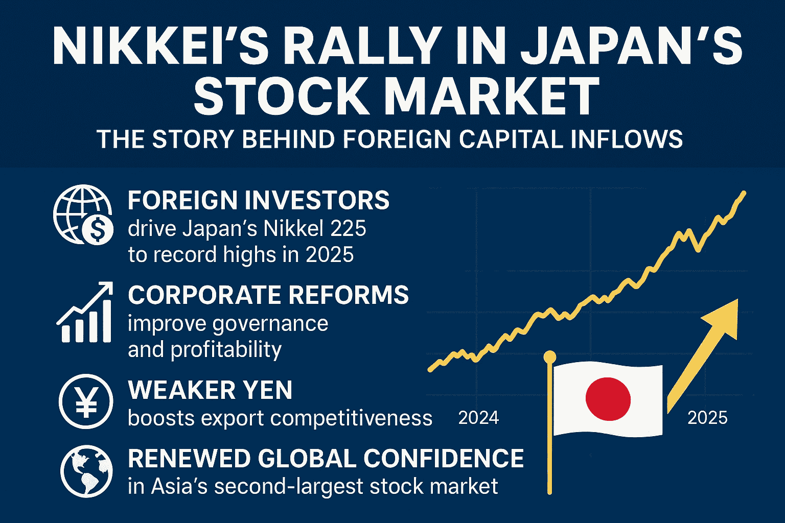 The Nikkei’s rally in 2025 tells a powerful story of renewal, resilience, and global trust. Driven by foreign inflows, governance reforms, and corporate innovation, Japan’s stock market is no longer a sleeping giant—it is wide awake and charging ahead.